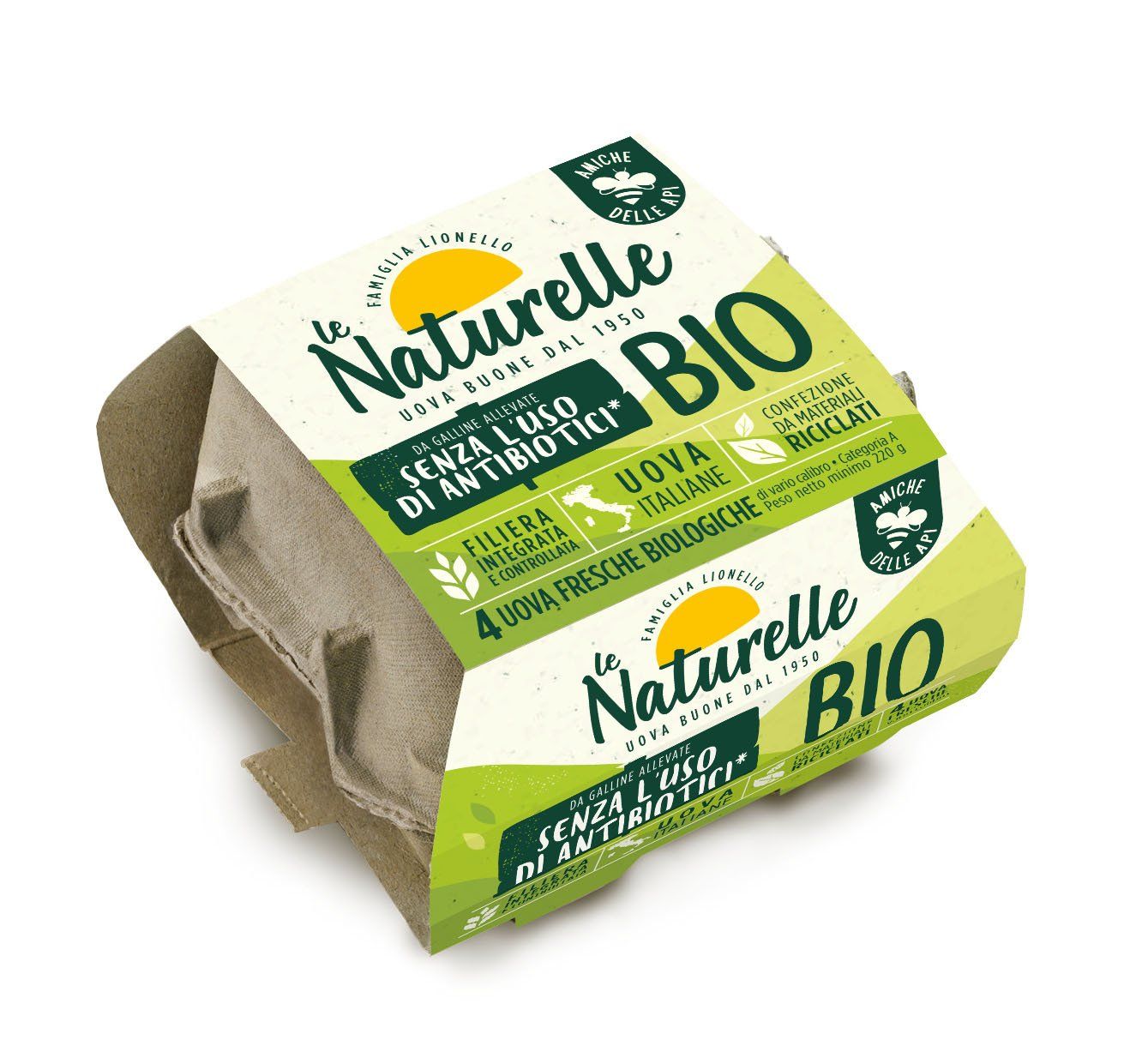 - Pack in polpa di legno e cartoncino, riciclati e riciclabili.